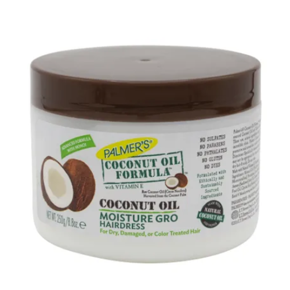 صيغة متقدمة مع المونويزيت جوز الهند الخام (Cocos Nucifera) من أشجار جوز الهند للشعر الجاف أو المتضرر أو المعالج بالألوان مصنوع من زيت جوز الهند الطبيعي مع المونوي مصنوع من فيتامين E الطبيعي (توكوفيرول) خال من الكبريتات خالٍ من البارابين لا يحتوي على الفثالاتبدون غلوتينبدون ألوان صناعية تم تصنيعه بشكل أخلاقي من مكونات مستخلصة من مصادر مستدامة شركة تملكها وتديرها عائلةPalmer ضد إجراء الاختبارات على الحيوانات تحتوي منتجات زيت جوز الهند المقدمة من Palmer على زيوت جوز الهند ذات المصادر الأخلاقية والمستدامة مع المونوي التاهيتية، مخلوطة مع على بتلات زهرة الغاردينيا.', 'هذه المواد الخام والمكونات الطبيعية ترطب الشعر بعمق، وتصلح ما به من أضرار وتمنحه لمعاناً يفوق الوصف.', 'Coconut Oil Moisture Gro Hairdress المقدم من Palmer يخلق غشاء حماية يغلف الشعر لتقويته وحمايته من التكسر.', 'زيت جوز الهند(Coconut Nucifera) -', 'يقوي الشعر ويضيف اللمعان زيت المونوي\xa0(زهرة الغاردينيا) يغذي الشعر بعمق ويصلحه زيت الزيتون\xa0(Olea Europaea)', '-يلطف فروة الرأس ويخفف التجعدات فيتامين E الطبيعي\xa0(توكوفيرول)', '-يساعد على الحماية من التلفتم تركيبه خصيصا للشعر الجاف جدا، القاسي أو المجعد.', 'قد لا تكون التركيبة مناسبة لأنواع الشعر الأكثر نعومةً.', 'طريق الاستخدام:', 'ضعي كمية بحجم حبة البركة لتنظيف وتجفيف الشعر وفروة الرأس.', 'لا يُغسل بعدها.', 'المكونات الزيوت المعدنية (البارافينيوم السائل) ، الشمع الجريزوفولفين (سيرا ميكروسريستيلنا) ، الفازلين ، كوكوس نوسيفيرا (جوز الهند) النفط ، توكوفيرول ، زيت بذور هيليانثوثوس (عباد الشمس) ، خلاصة زهرة جاردينيا تاهيتينسيس ، زيت الزيتون أوروبي (زيت الزيتون) ، جليسين سوجا (فول الصويا) النفط ، اللانولين ، العطر (عطر) ، الكومارين.', 'تحذيرات:', 'للاستعمال الظاهري فقط.', 'يجب تجنب ملامسة العين.', 'يُحفظ بعيداً عن متناول الأطفال.